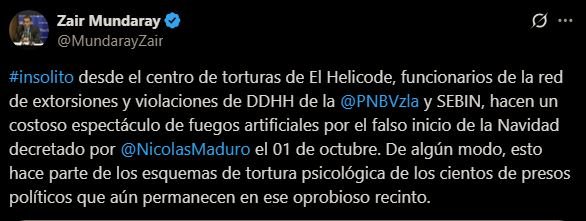 Dicha acción generó repudio entre los usuarios de redes sociales, quienes criticaron ver un centro de torturas iluminado y festivamente adornado con fuegos artificiales, señalando la insensibilidad del chavismo ante la situación de los presos políticos.